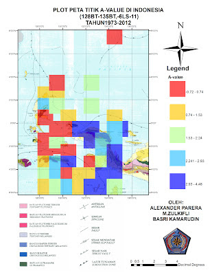 Demikian hasil pengolahan, penyortiran, dan komputasi data yang kemudian di-overlay-kan dengan software ArcGIS , MATLAB, dan Zmap.